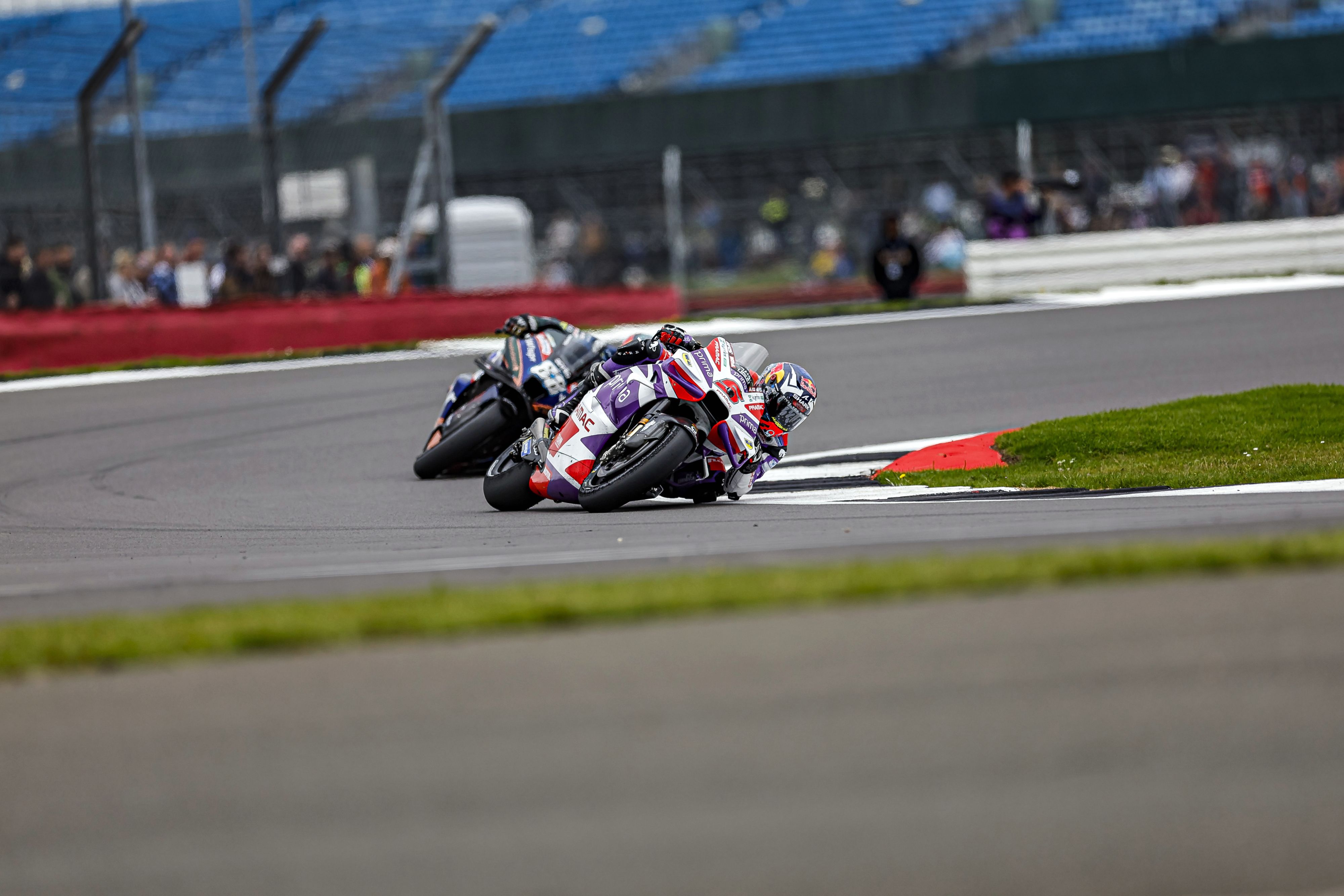 13h, heure Anglaise c’est le départ, beaucoup de bousculade et le premier tour est bouclé en 9ème position. Un tour plus tard à la faveur d’erreurs de ses concurrents Johann est maintenant 6ème à 2 secondes du leader mais le rythme de celui-ci est supérieur. Vinales en profite pour prendre la 6ème place mais celle-ci est récupérée avec le souci technique d’Alex Marquez.